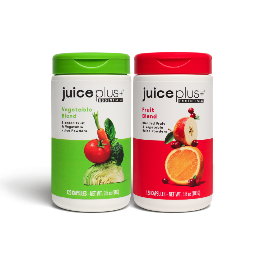 We created our Juice Plus+ Essentials Capsules to help you bridge the gap between what you should eat, and what you do eat, every day. Complement your diet with added nutrition from 30 different fruits, vegetables, and berries, PLUS a blend of omega fatty acids sourced from plants, seeds, and algae.